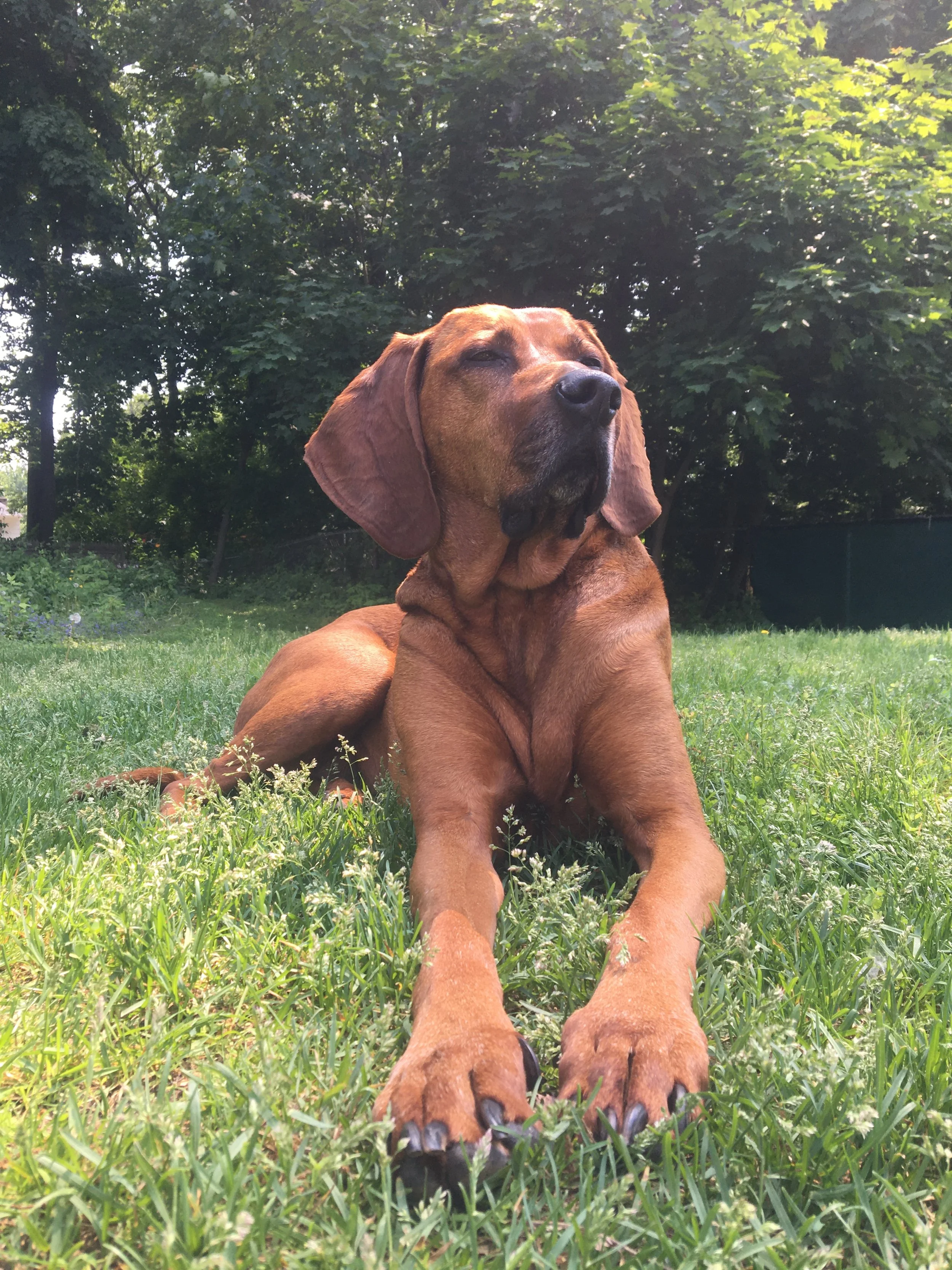 Formerly a Virginia stray, this sweet weirdo hitched a ride with Northeast Coonhound Rescue and hasn’t looked back.